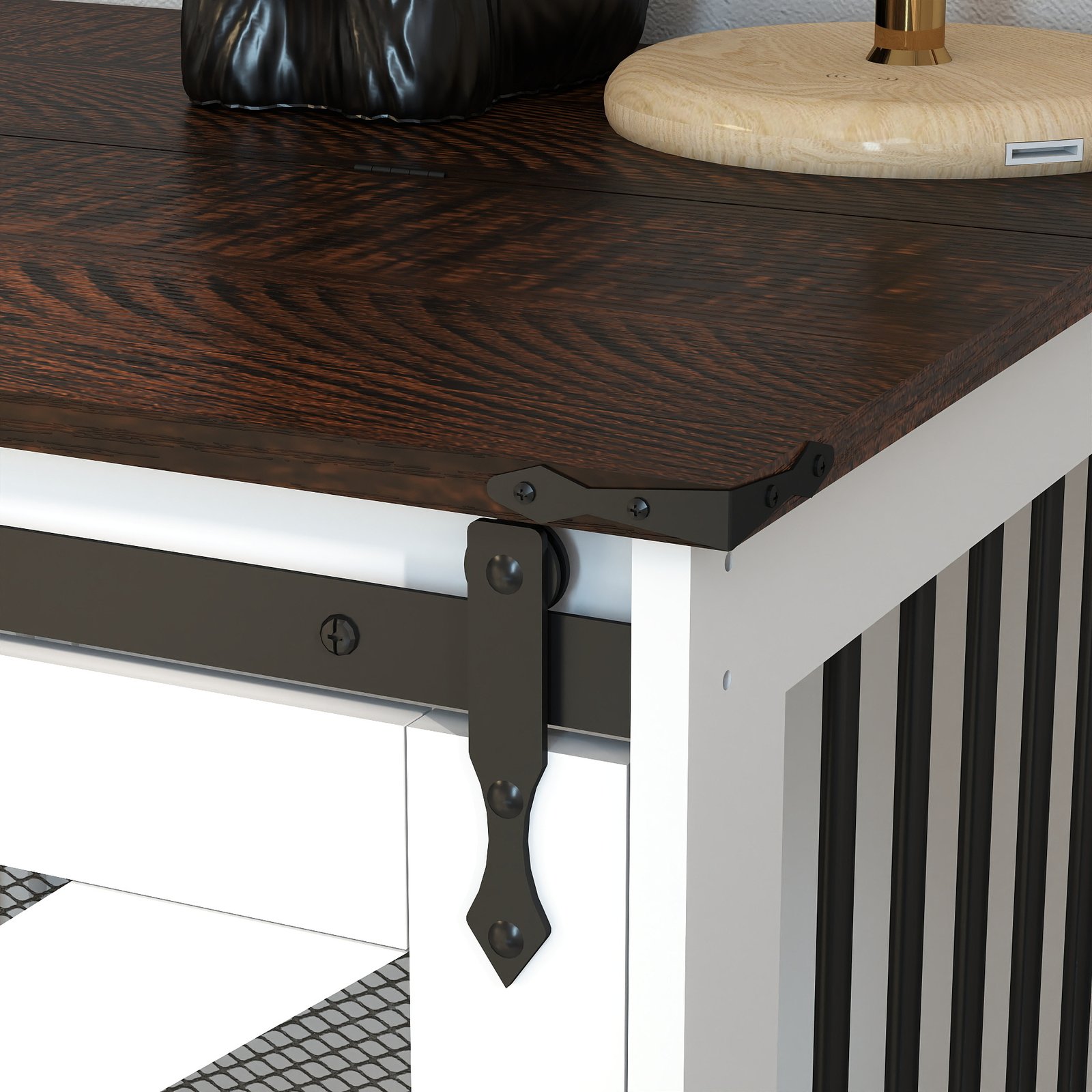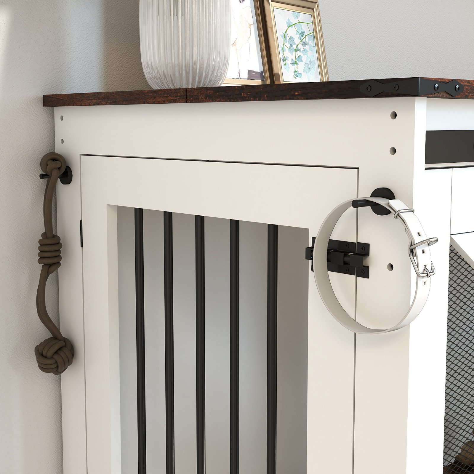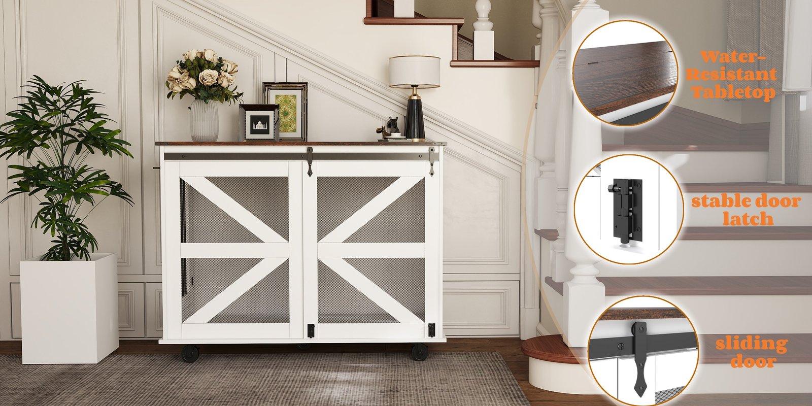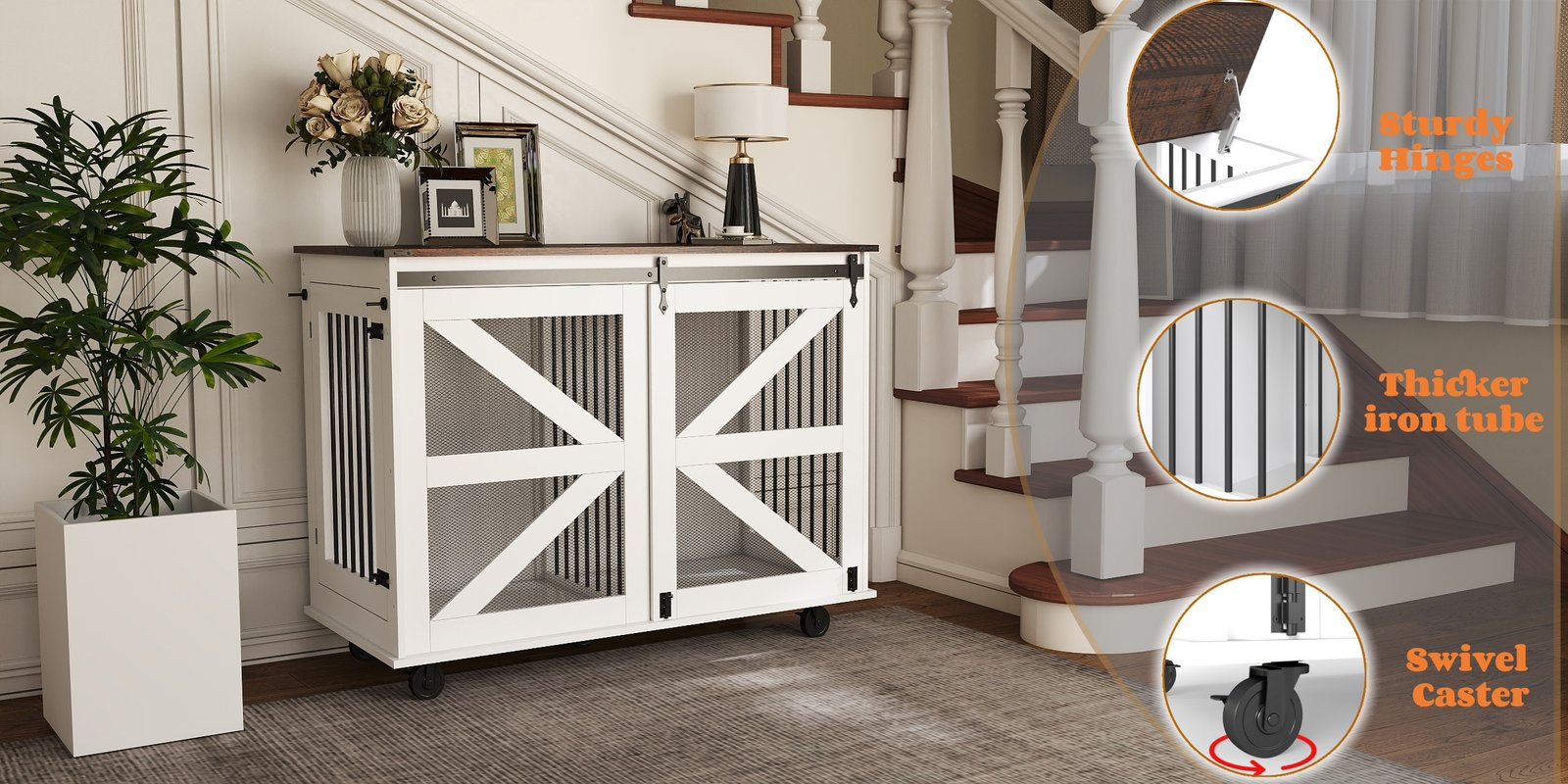 47.2″ Mobile Dog Crate with Flip-Top Feeding Door, Dual-Access & 5 Caster System (2 Locking), Side Hooks – Multi-Functional Pet Kennel,double dog crate furniture