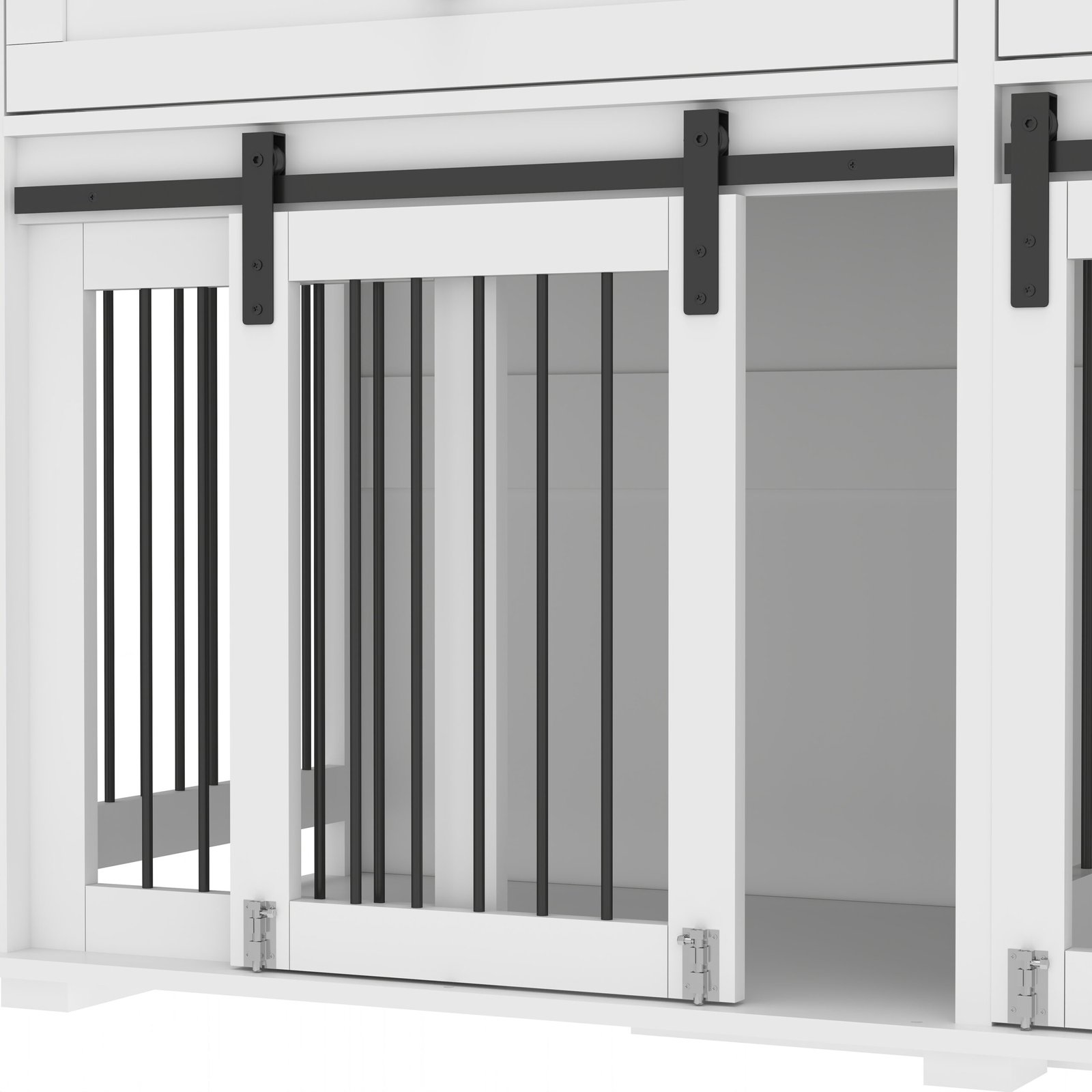 Removable Middle Divider : The removable divider design makes the dog crate more creative and multifuncitonal; when the divider is placed inside of the dog crate,it’s divided into two separate spaces, turning it into double crates kennel; When for larger dogs, it is simply to remove the divider to comfortably accommodate it and give your dog a large space to move around.